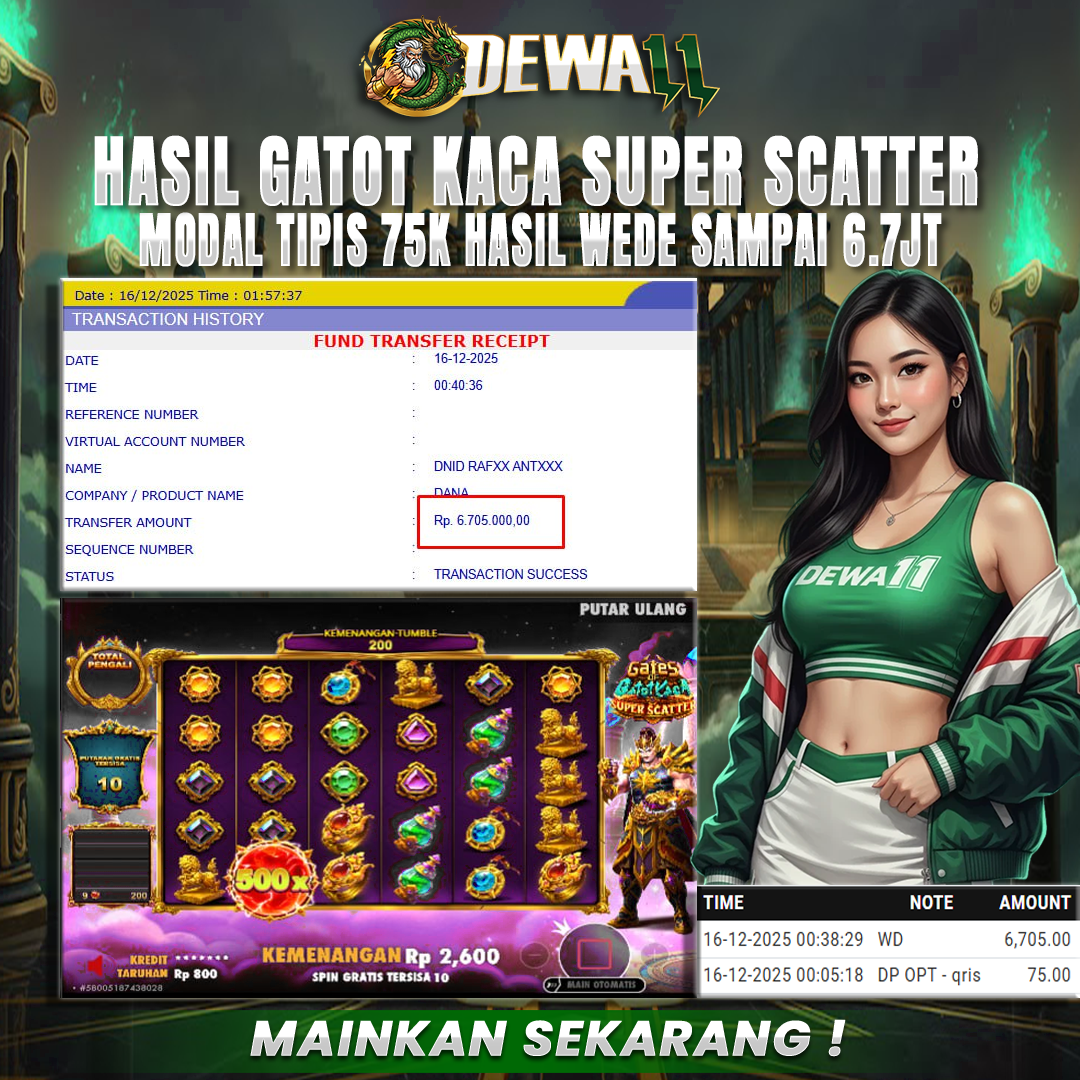 DEWA11 menghadirkan game jackpot vip yang di lengkapi fitur khusus new member hanya dengan modal deposit 75k dijamin akan withdraw 6,7 juta malam ini.